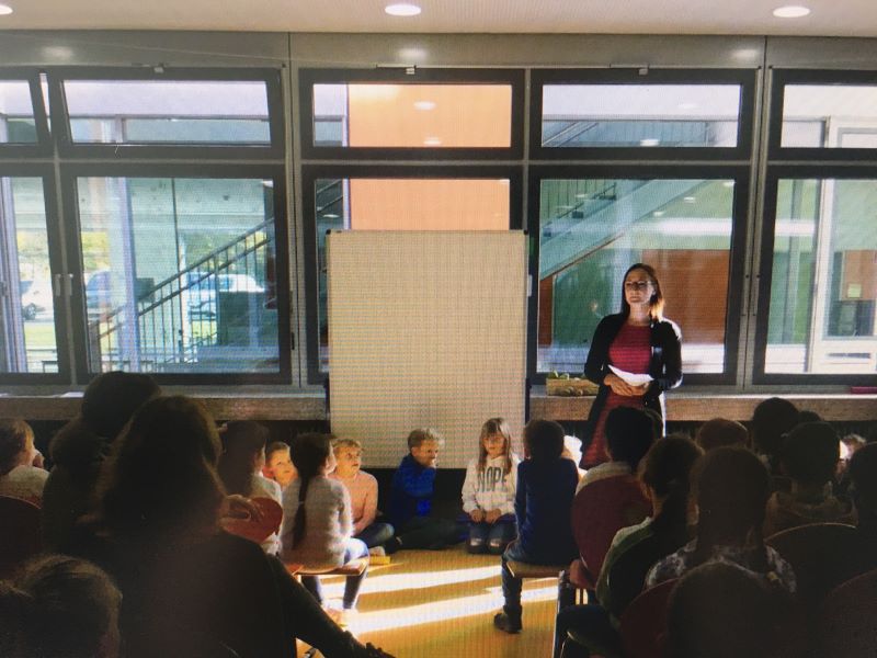 Am Freitag, den 13.10. verabschiedeten wir unsere Simone Igel in die Elternzeit. Alle Lehrerinnen, Schüler und Schülerinnen sangen ihr zum Abschied den Lilly-Song. Mit einem Blumenstrauß bedankten wir uns bei ihr für ein außergewöhnliches Engagement an unserer Schule. Wir werden ihre liebevolle Art und ihre klare Struktur vermissen.