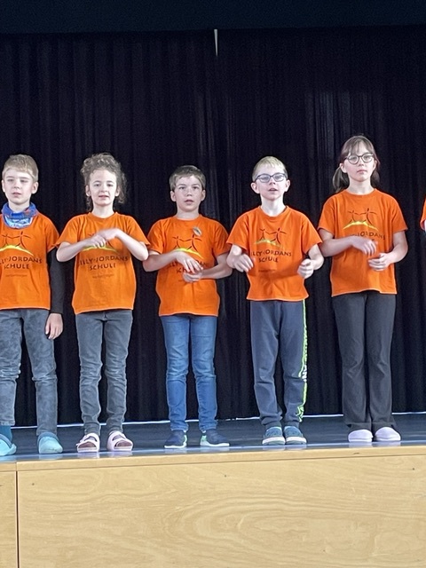 Umrahmt wurde das ganze, im stimmigen orangenen Erscheingungsbild unserer Lilly-T-Shirts, von unserem Lilly- Lied und dem Lied „Ich bin Ich“, was die gesamte Schülerschaft textsicher und voller Inbrunst zum Besten geben kann. Hierbei stellt sich immer ein tolles Gemeinschaftsgefühl ein, ganz nach unserem Jahresmotto „Wir“.