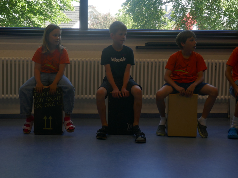 Am Dienstag konnten alle Schüler eine Schulstunde lang ihr Rhythmusgefühl erproben. Mit Cajons, Maracas, Kuhglocke, Gurke, Claves,... ausgestattet wurden wir, kurzweilig und in tolle Geschichten rund um den Globus (v.a. Peru, Brasilien und Kuba) eingebettet, zu rhythmischen Höchstleistungen motiviert. Mittags ging es weiter mit einer entsprechenden Fortbildung für uns Lehrerinnen. Matthias Philipzen (Drummer, Percussionist und Musikdozent an der Hochschule Würzburg) begeisterte uns mit seinem Cajon- Workshop sehr. Vielen Dank an den Förderverein, der uns dies durch seine Spende ermöglichte.
